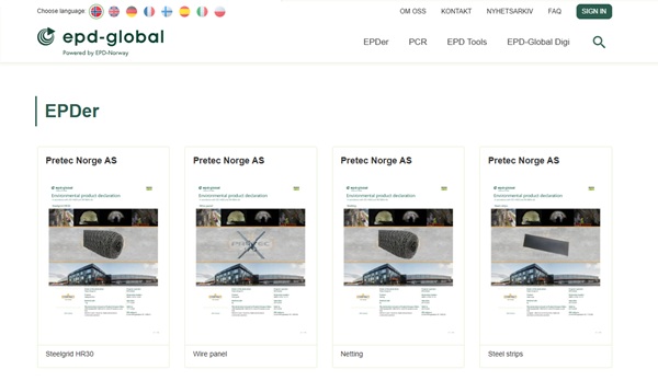 Ved å følge lenken får du tilgang til EPD-dokumentasjon publisert i EPD Global.